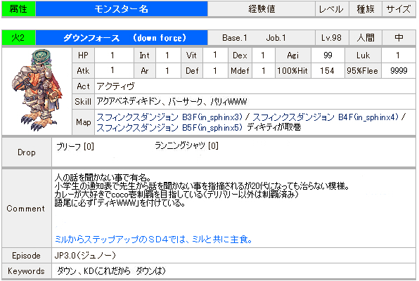以前ミルねぇのモンスター情報をうpっていたので
